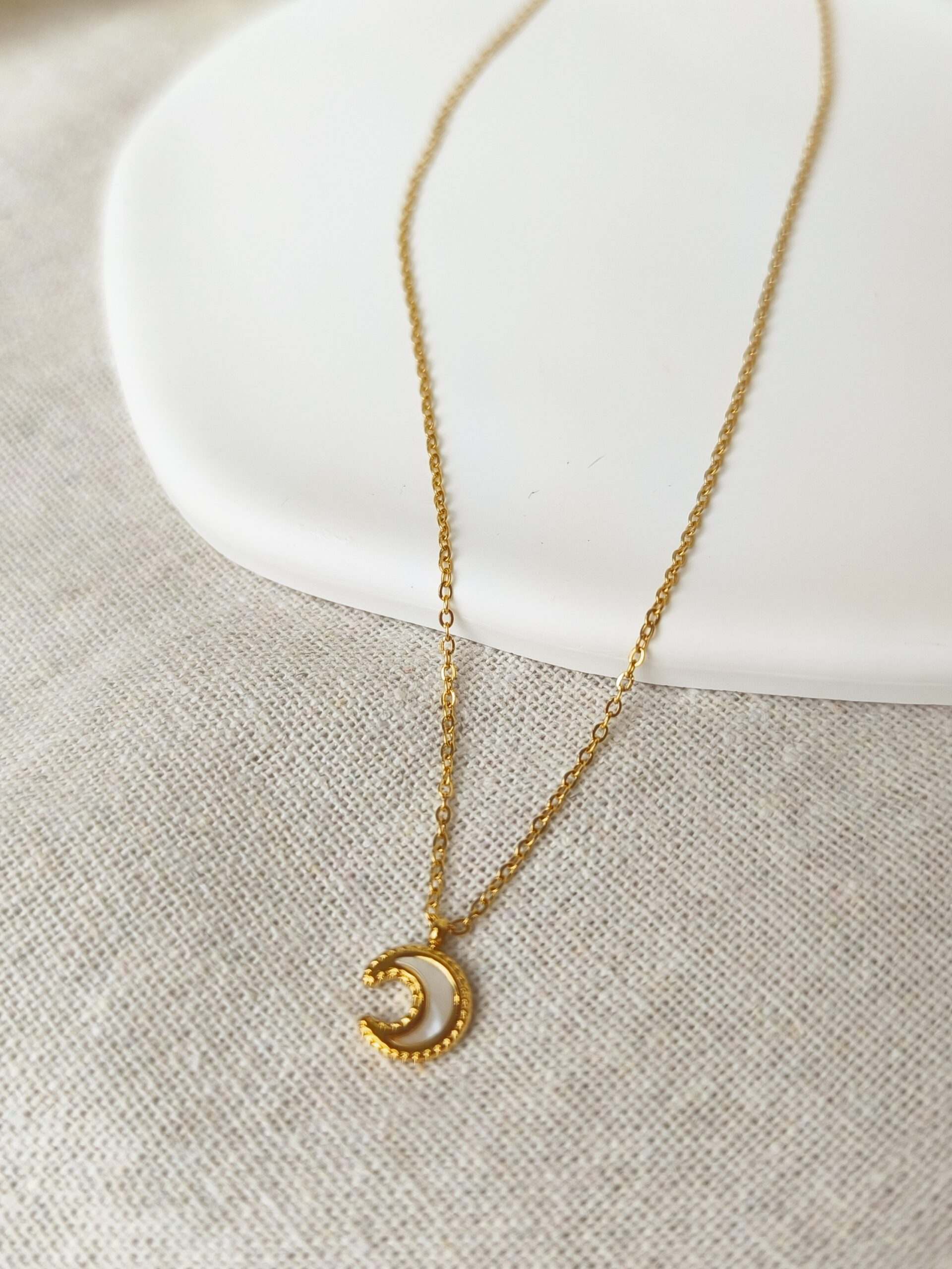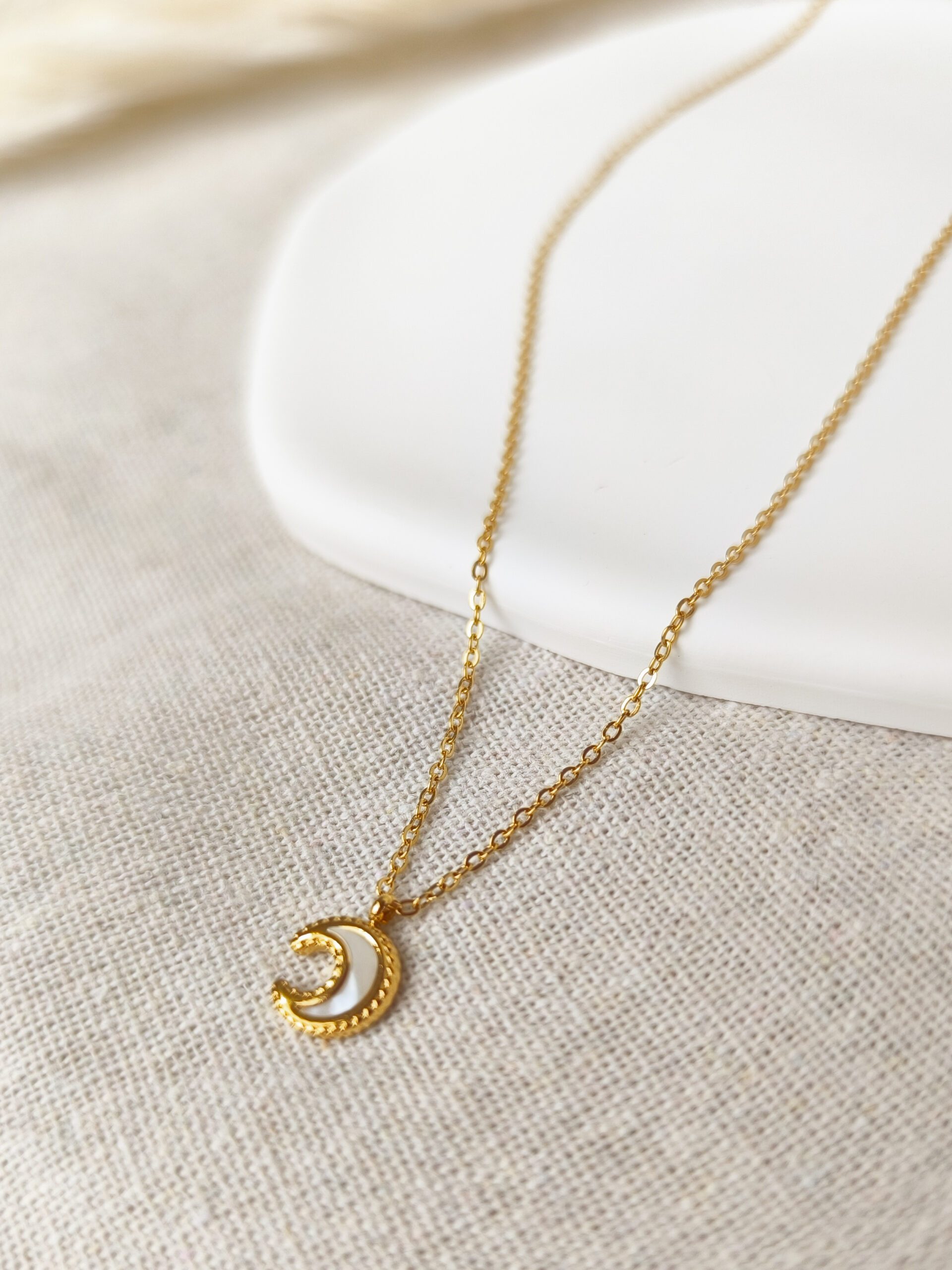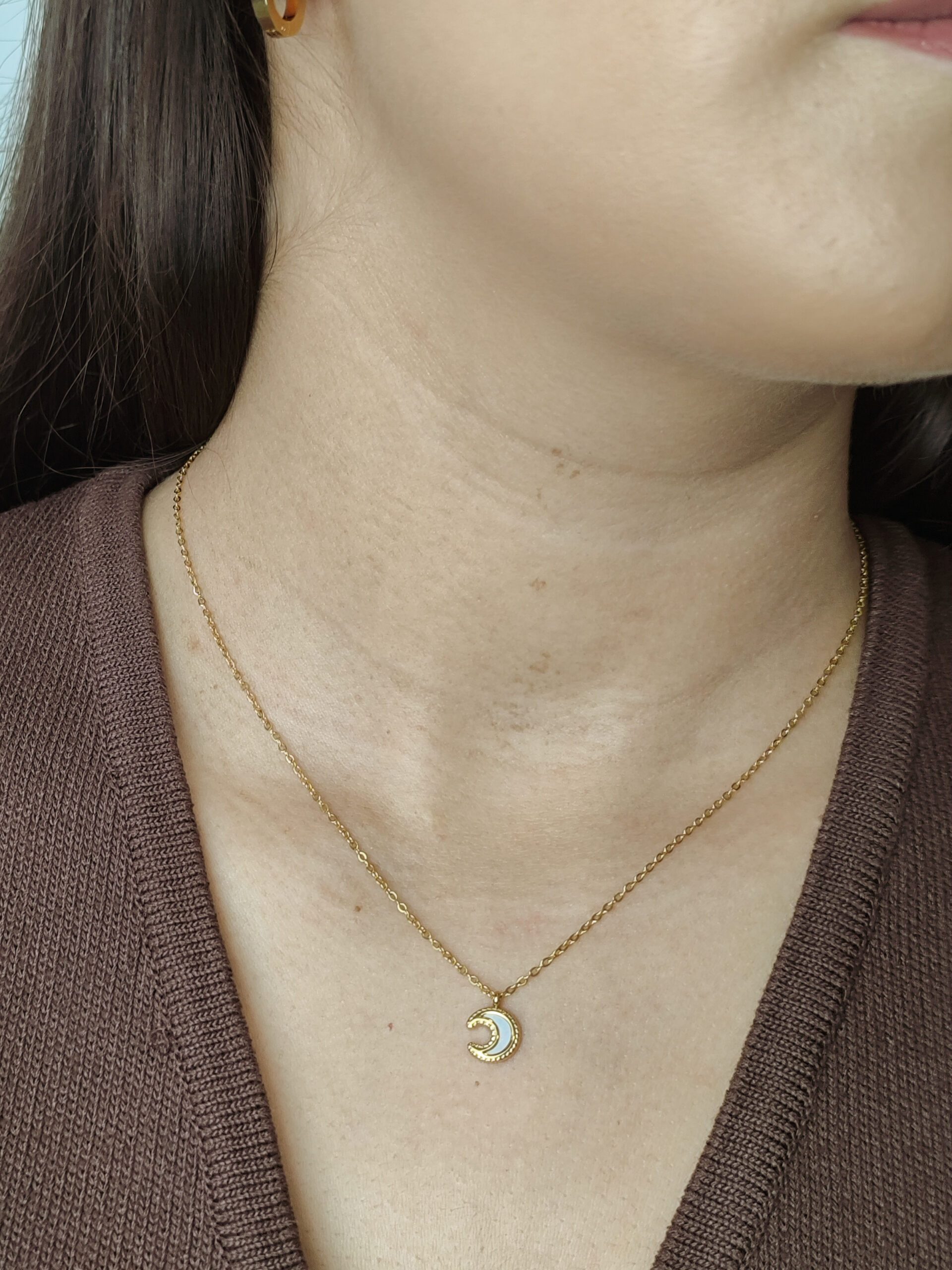 Com o seu pendente em forma de meia-lua e o brilho subtil do dourado, é uma peça que reflete a delicadeza e a força feminina.