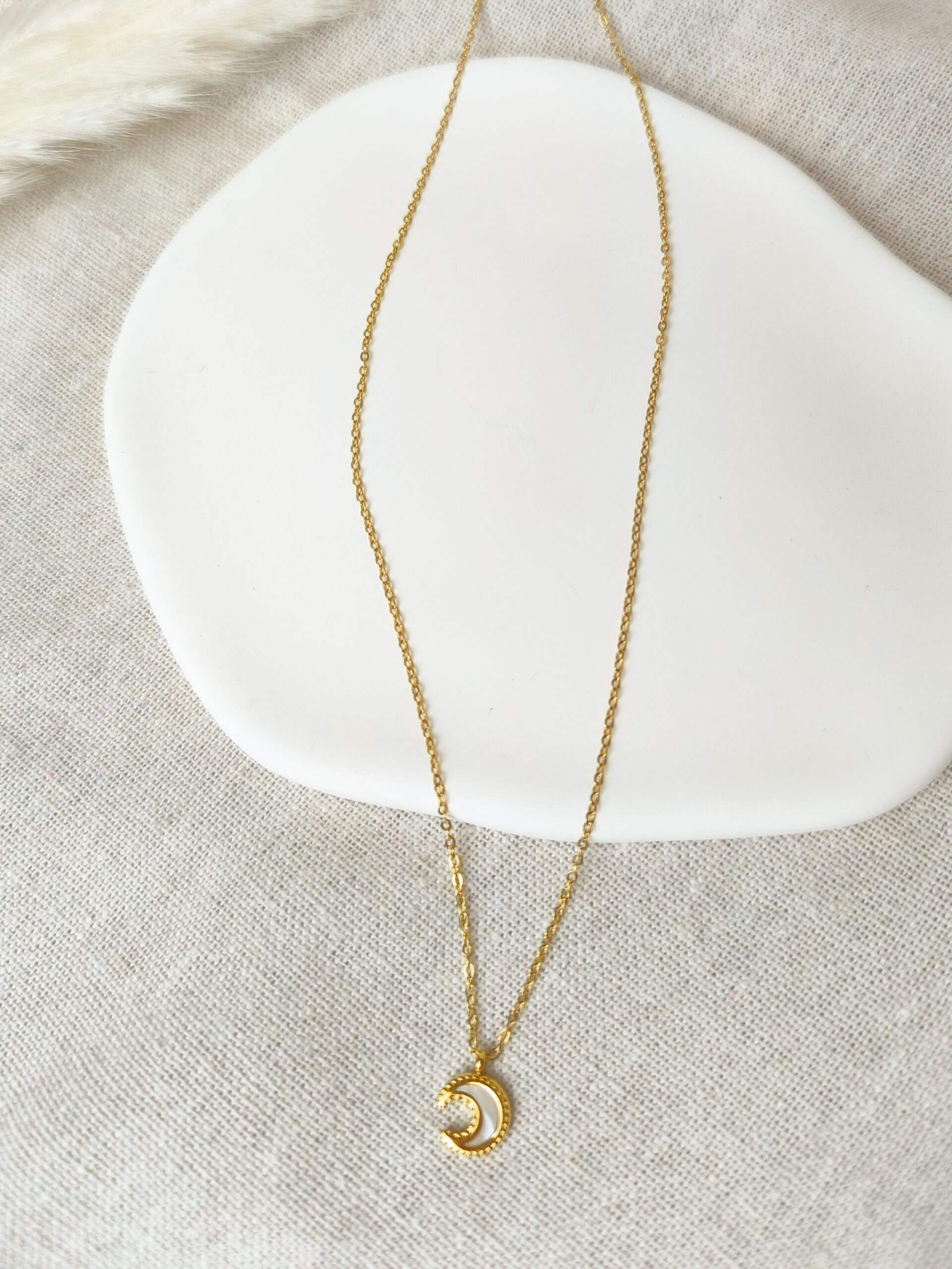 Delicado e simbólico, o Colar Lune celebra a luz e a feminilidade. Um amuleto moderno de elegância e serenidade.